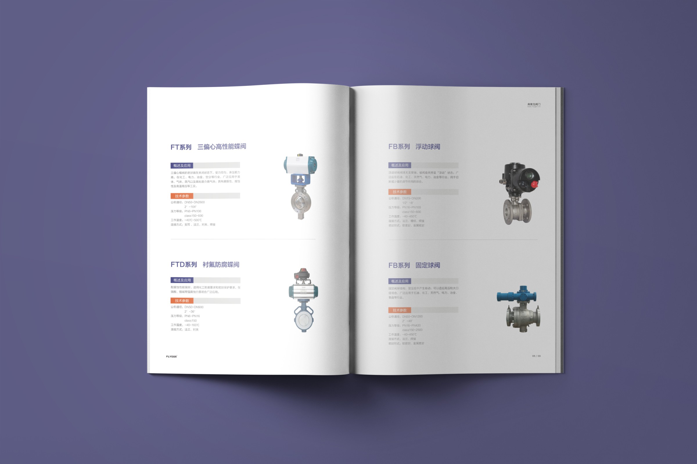 FLYGER弗莱戈公司主要产品包括:软密封球阀、硬密封球阀、双偏心蝶阀、三偏心蝶阀、软密封蝶阀、三连杆蝶阀、衬氣阀门、全衬陶瓷阀、闸阀、截止阀、止回阀、调节阀、电动执行器、气动执行器及相关附件等系列,同时提供特殊阀门设计制造和服务。